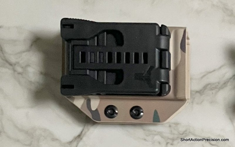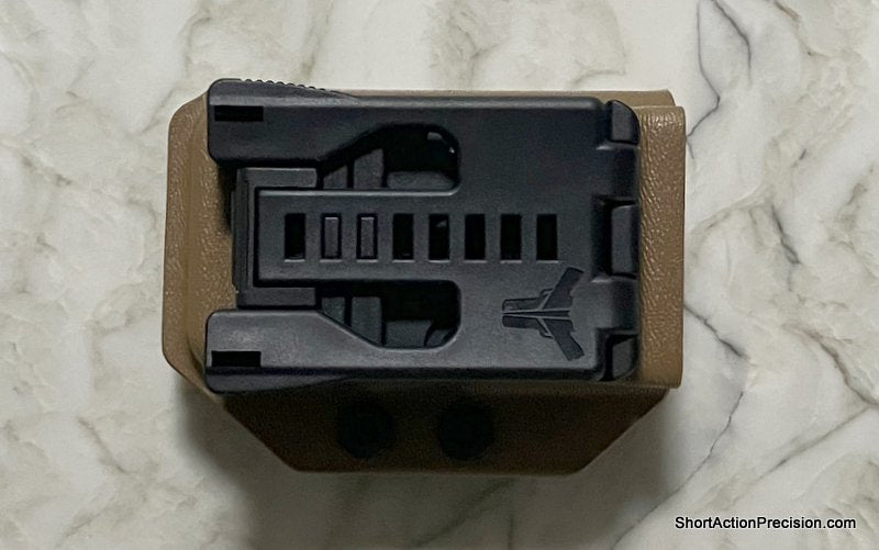 The SAP KBH Kestrel Belt Holster is the newest updated adjustable holster in the SAP lineup. It is designed from feedback from precision shooters to address keeping your Kestrel weather meter accessible on your belt, while protecting the buttons and screen from harm. This holster has an adjustable tension system that will allow you to set the retention level of how much grip it has on the sides of the Kestrel. It also has enhanced features like a flared opening for easy insertion, a bottom that has an open slot to allow you to keep the lanyard attached to the Kestrel meter if you like.